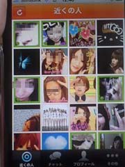 画面はシンプルで近くの会員のプロフィール画像が順番に並んでいるだけ。緑の枠が付いている会員がオンライン中って目印です。